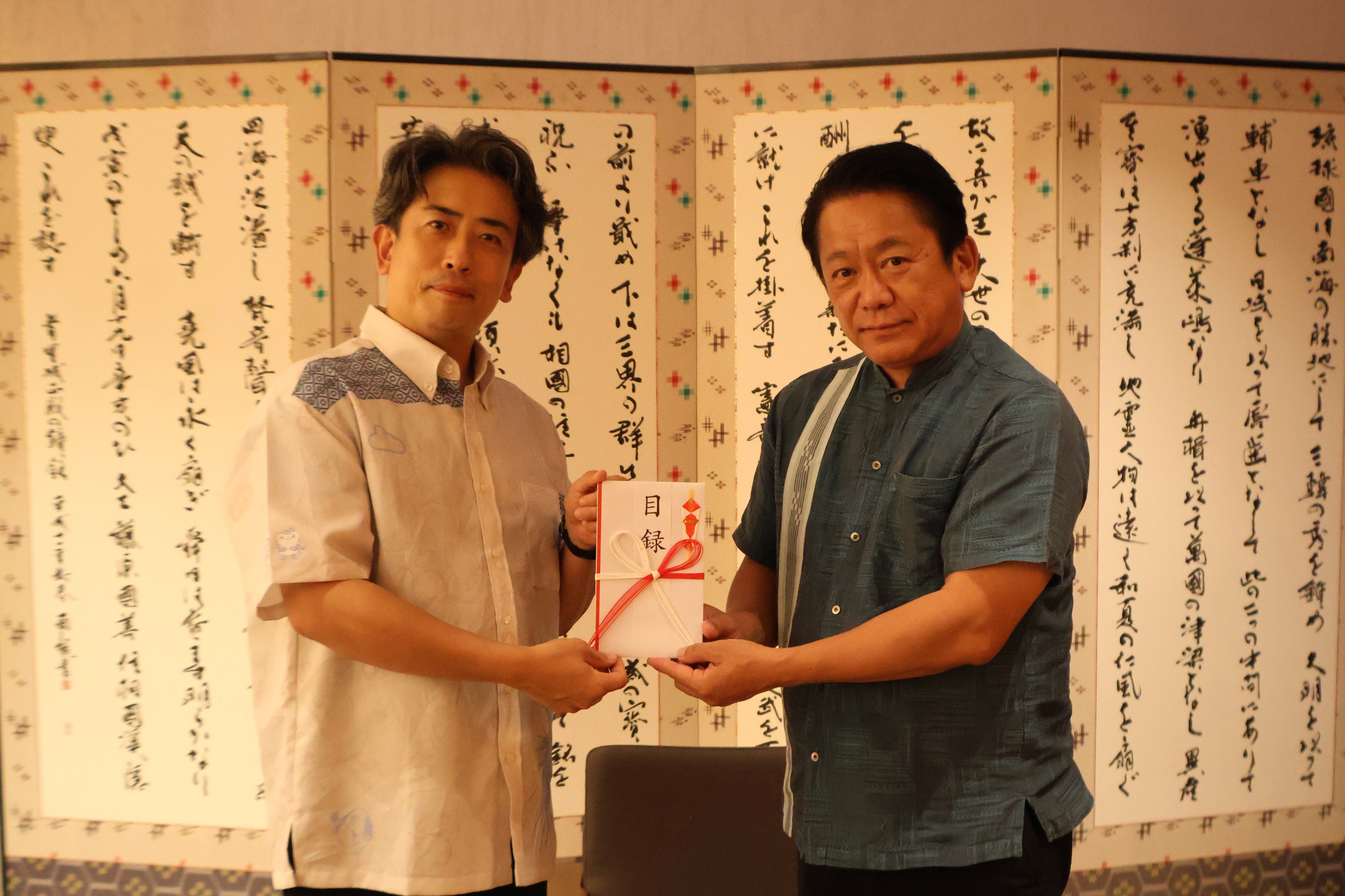 左から、当社 沖縄営業所 所長 兼 代表取締役副社長 木村 慎、石垣市 市長 中山 義隆様
